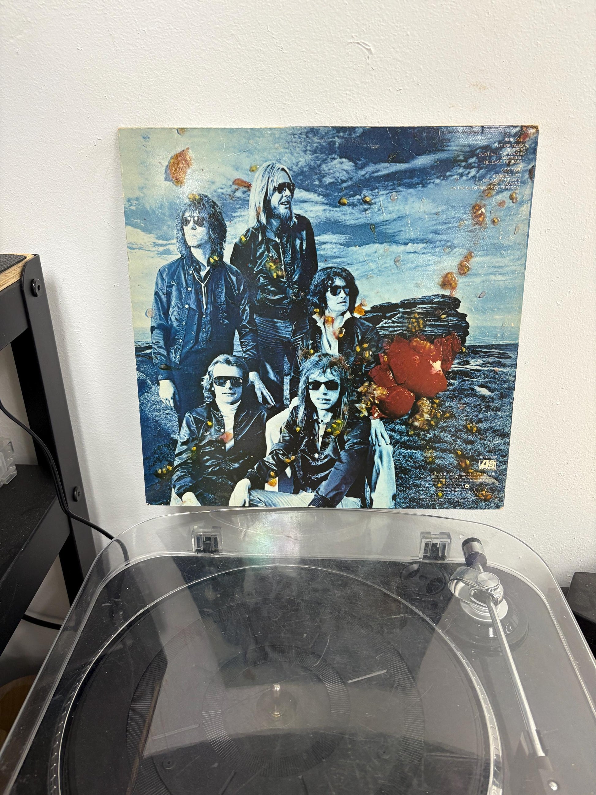 Cover is in pretty good used condition. Some discolouration, the corners are worn down and a small 3- on the top right. Original inner sleeve is in very good condition. Record has some very minor flaws, but plays without any problems.